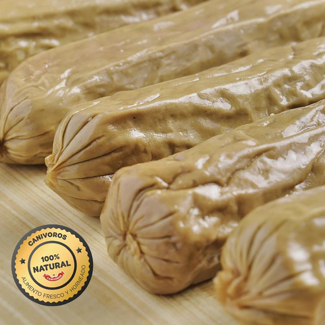 Chorizos hechos con pollo y salmón 100% naturales, sin aditivos ni conservantes, para brindarle a tu perro una nutrición completa y deliciosa