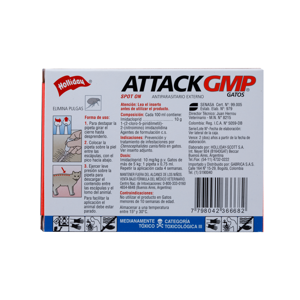 Antiparasitario Externo para Gatos Attack GMP x 0,75ml (Mayor a 5 KG)
