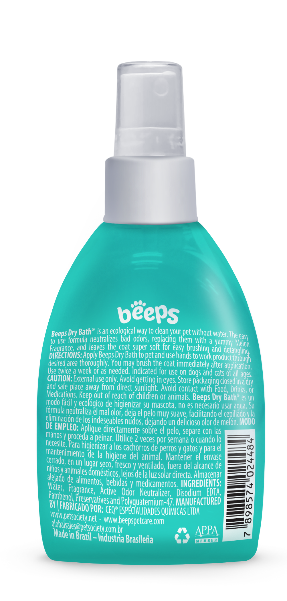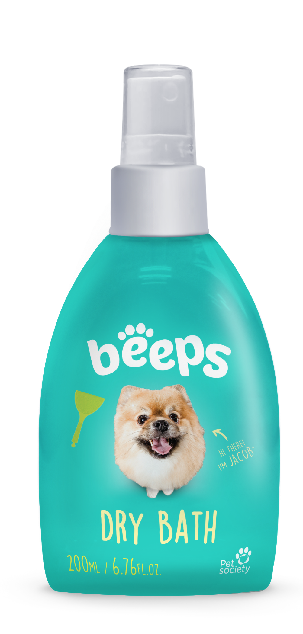 El baño seco Beeps es una excelente opción para mantener limpia a tu mascota cuando viajas o entre baños.