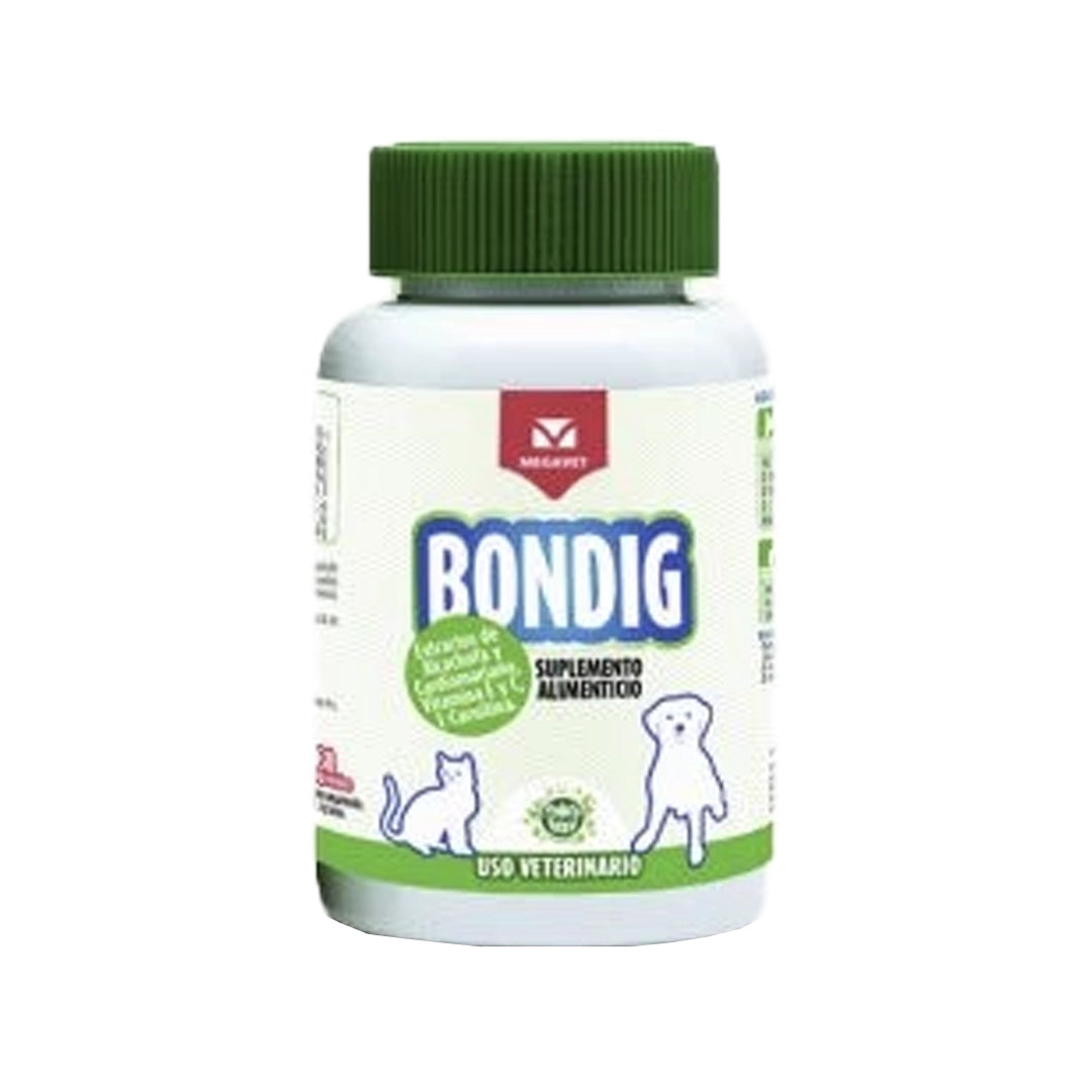Bondig Hepático es un suplemento que parece estar diseñado para la salud hepática de los perros o gatos. La presentación mencionada, "fco 30 tab", sugiere que se trata de un frasco con 30 tabletas. Este tipo de suplemento suele contener ingredientes destinados a apoyar la función hepática y promover la salud del hígado. Puede incluir antioxidantes, vitaminas, minerales y otros nutrientes específicos que benefician la salud de este órgano.