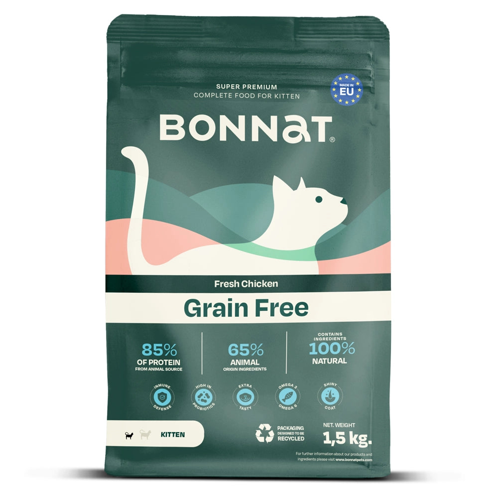 Alimento Super Premium Grain-Free, con 85% de Proteína de Origen Animal, 65% de Ingredientes de Origen Animal y con Ingredientes 100% Naturales, Específico para Gatitos Cachorros de Hasta los 12 Meses de Vida. Ayudará a los Gatitos Cachorros a Potenciar su Desarrollo y Crecimiento, Protegiendo la Piel y el Pelaje, Manteniéndolos Sanos y con un Sistema Inmunológico Activo, Permitiéndoles Estar Sanos y Fuertes Durante Toda su Vida. Con Alto Nivel de Probióticos que Ayudan a Estimular y Mantener la Salud Intestinal