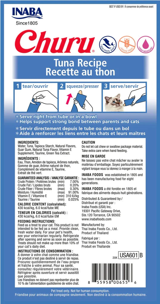 Churu Atún es un alimento para gatos en forma de pasta que proviene de la marca Inaba. Esta pasta suave y sabrosa está hecha con auténtico atún de alta calidad. Presentada en un tubo exprimible, Churu es una forma deliciosa de mimar a tu gato, darle medicamentos o simplemente consentirlo. Su textura atractiva es ideal para alimentar directamente de la mano o colocar sobre la comida. Además de ser un regalo especial, Churu también ayuda a mantener la hidratación, lo cual es crucial para la salud felina. Antes de agregar nuevos alimentos a la dieta de tu gato, es prudente consultar con un veterinario.