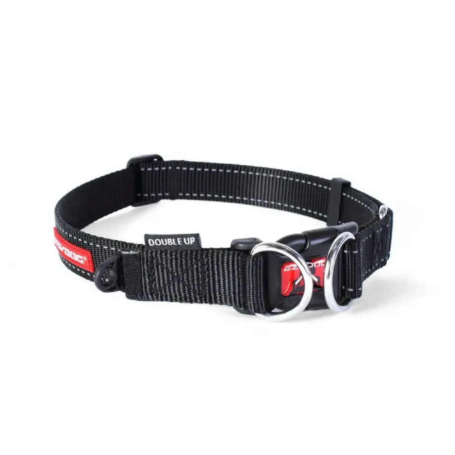 El collar Doble Up XL es la elección perfecta para aquellos que buscan la máxima seguridad y comodidad para su perro. Su anillo en D doble de acero inoxidable garantiza una fijación segura de la correa, brindando tranquilidad, resistencia y durabilidad adicionales. Además, está confeccionado con nuestro exclusivo tejido patentado Soft Touch™, que es suave al tacto pero increíblemente resistente, asegurando la comodidad de su mascota durante todo el día.