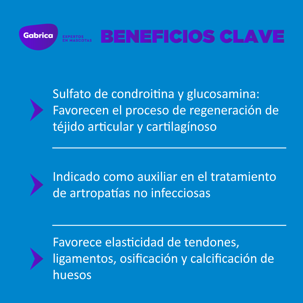 Regenerador articular para lesiones articulares, evita degeneración articular, ideal para la liberación de mediadores de inflamación. Elasticidad de tendones, ligamentos, osificación y calcificación de huesos.