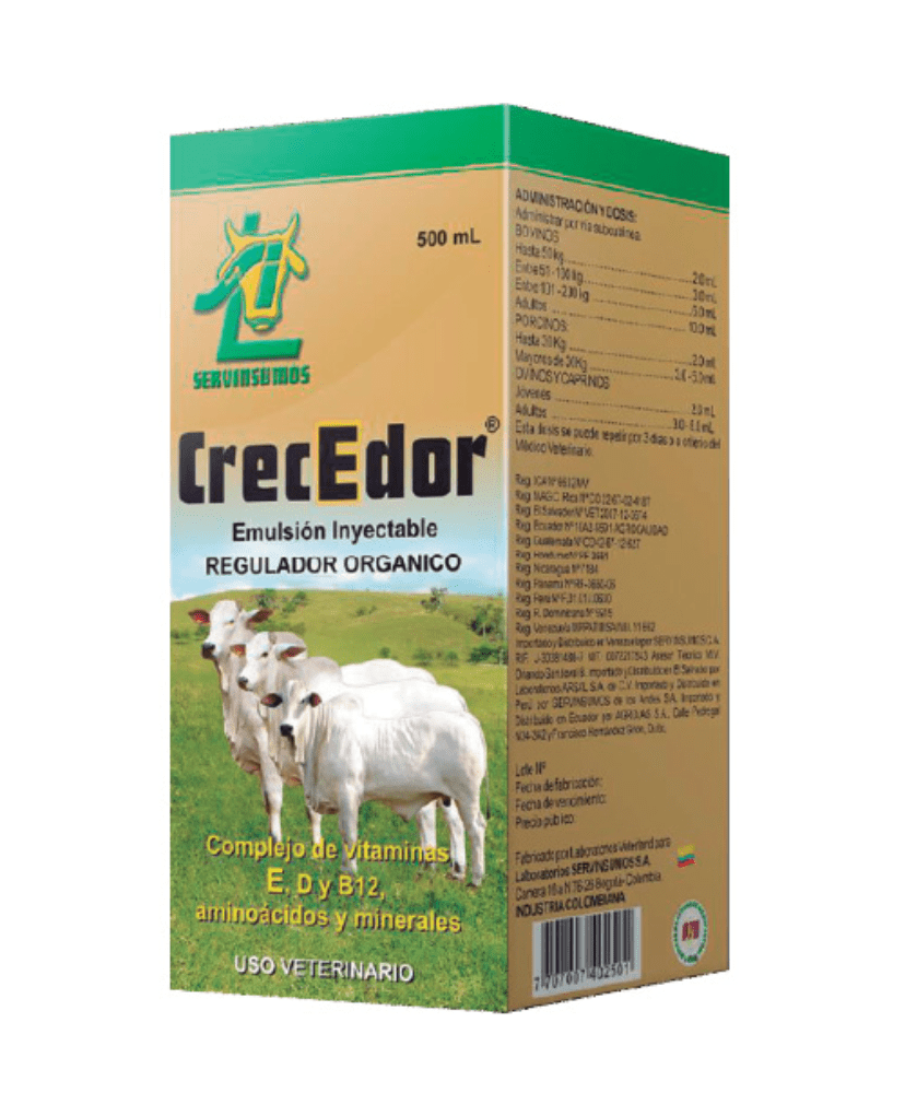 DOSIS: Aplicación subcutánea de 1 ml por cda 25 Kg de peso vivo. Esta dosis puede repetirse diariamente hasta por 3 días o según criterio del médico veterinario. Está igualmente indicado su empleo en programas de aplicación estratégica para prevenir o controlar desordenes orgánicos y consecuentes bajas en el crecimiento y la producción animal. En situaciones de dificiente calidad de la alimentación o en etapas productivas en que los animales tienen mayor exigencia nutricional. Aplicación subcutánea exclusivamente.