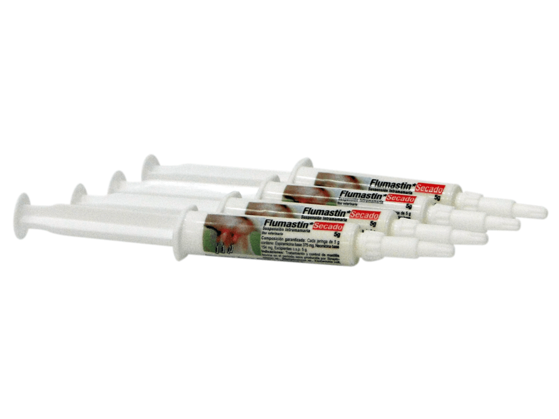 DESCRIPCIÓN: La asociación de Espiramicina y Neomicina presentes en la fórmula de Flumastin® Secado produce una potente acción bactericida contra los gérmenes causantes de mastitis. La suspensión intramamaria de Flumastin® Secado contiene dos (2) antibióticos de acción sinérgica y amplio espectro con una base de ingredientes cuyas características fisicoquímicas permiten mayor tiempo de acción del producto, ejerciendo su actividad bactericida, evitando que se presente en la fase aguda y manteniendo la glándula en estado sano durante el parto e inicio del período de lactancia.