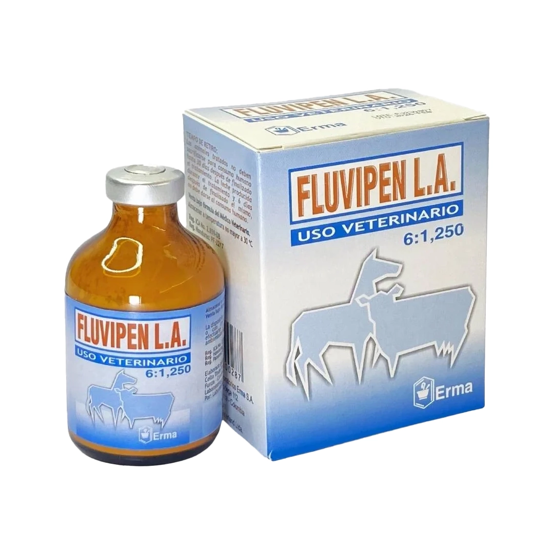 Fluvipen® L.A. combina dos antibióticos potentes, Penicilina G Benzatínica y Penicilina G Procaínica, junto con la acción antiinflamatoria de la Flumetazona. Este producto es ideal para el tratamiento de infecciones bacterianas y la reducción de la inflamación en animales, asegurando una recuperación rápida y efectiva. Perfecto para tratar neumonía, bronquitis, infecciones del tracto urinario y reproductor, y mucho más. Fluvipen® L.A. proporciona una solución eficaz y de acción prolongada para mantener la salud de tus animales.
