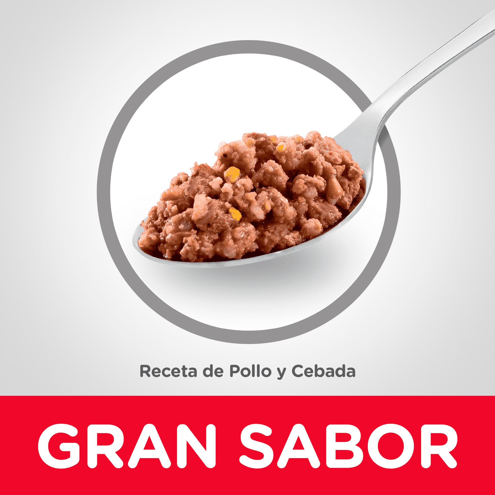 Agua, pollo (carne, piel), hígado de cerdo, maíz entero, cebada perlada quebrada, subproductos de res (menudencias), harina de soya, saborizante de hígado de pollo, suero de leche desecado, aceite de soya, carbonato de calcio, sal yodada, cloruro de colina, vitaminas (complemento de vitamina e, mononitrato de tiamina, ácido ascórbico (fuente de vitamina c), complemento de niacina, pantotenato de calcio, complemento de vitamina b12, clorhidrato de piridoxina, biotina, complemento de vitamina d3, complemento de riboflavina, ácido fólico), color de óxido de hierro, cloruro de potasio, minerales (óxido de zinc, sulfato ferroso, sulfato de manganeso, sulfato de cobre, yodato de calcio), óxido de magnesio, beta caroteno.