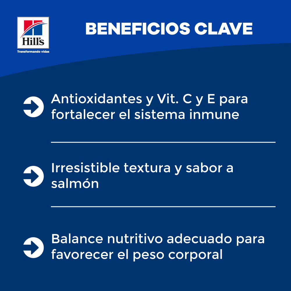 El alimento húmedo para gatos adultos Science Diet Adult Savory Salmon Entrée brinda el sabor gourmet del salmón con una textura suave. Contiene nutrición completa para el correcto funcionamiento del sistema musculoesquelético.