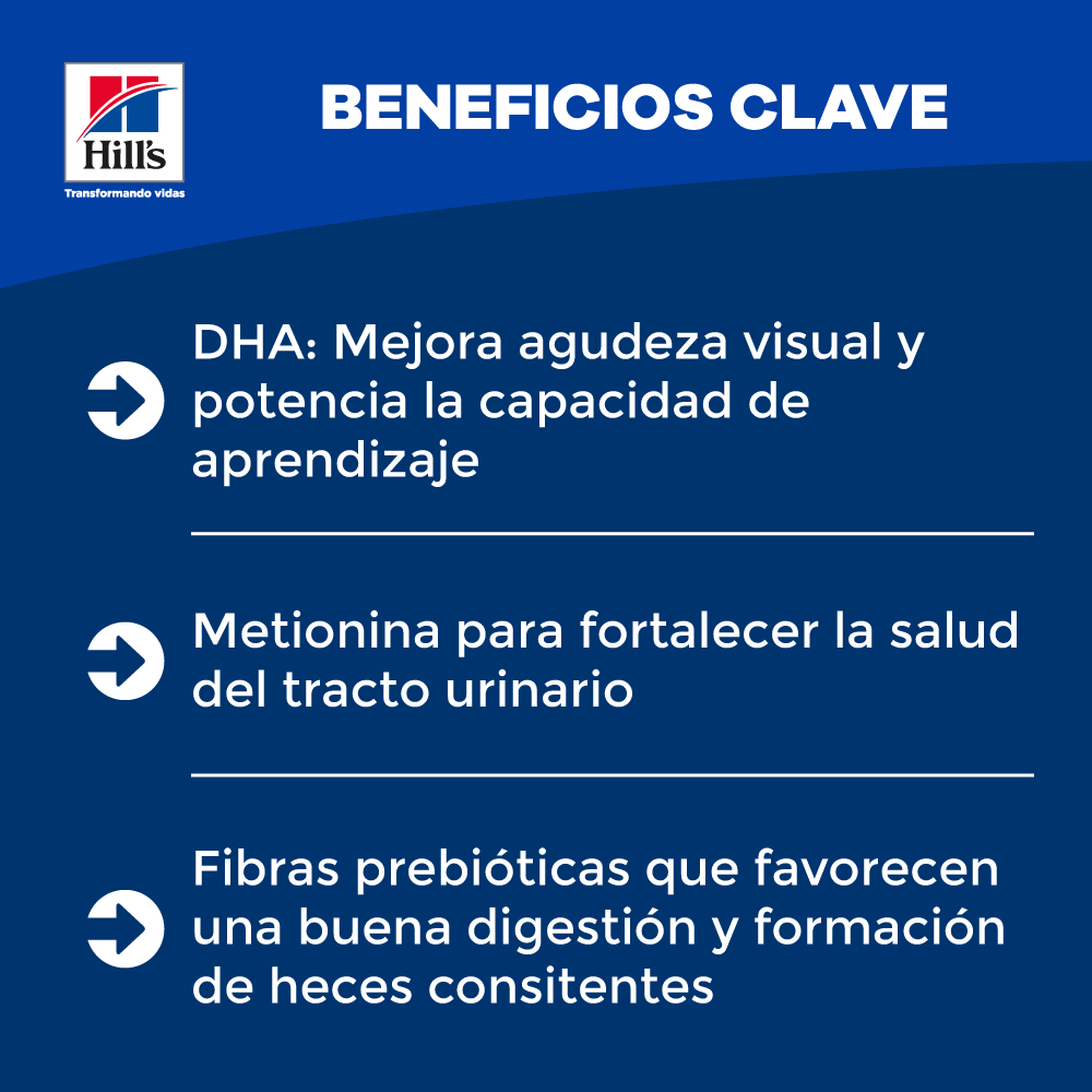 Este alimento mejora la digestión de tu felino, es suave y sano, permite que puedas limpiar de mejor manera la caja de arena de tu mascota, mejorando sus heces, tiene ingredientes antioxidantes que están clínicamente comprobados.