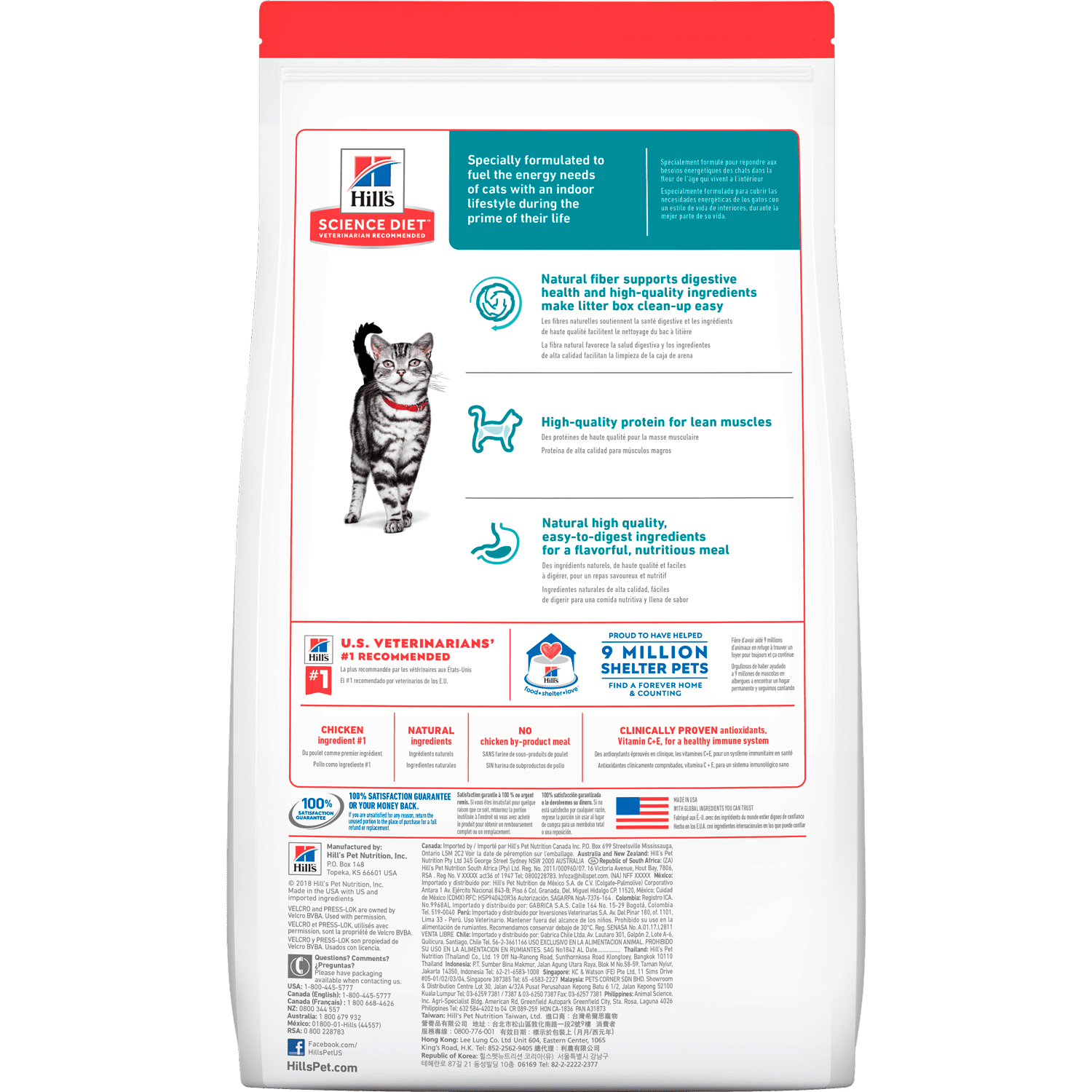 El alimento para gatos Hills Science Diet Adult Indoor proporciona nutrición completa para gatos adultos con un estilo de vida de interiores.