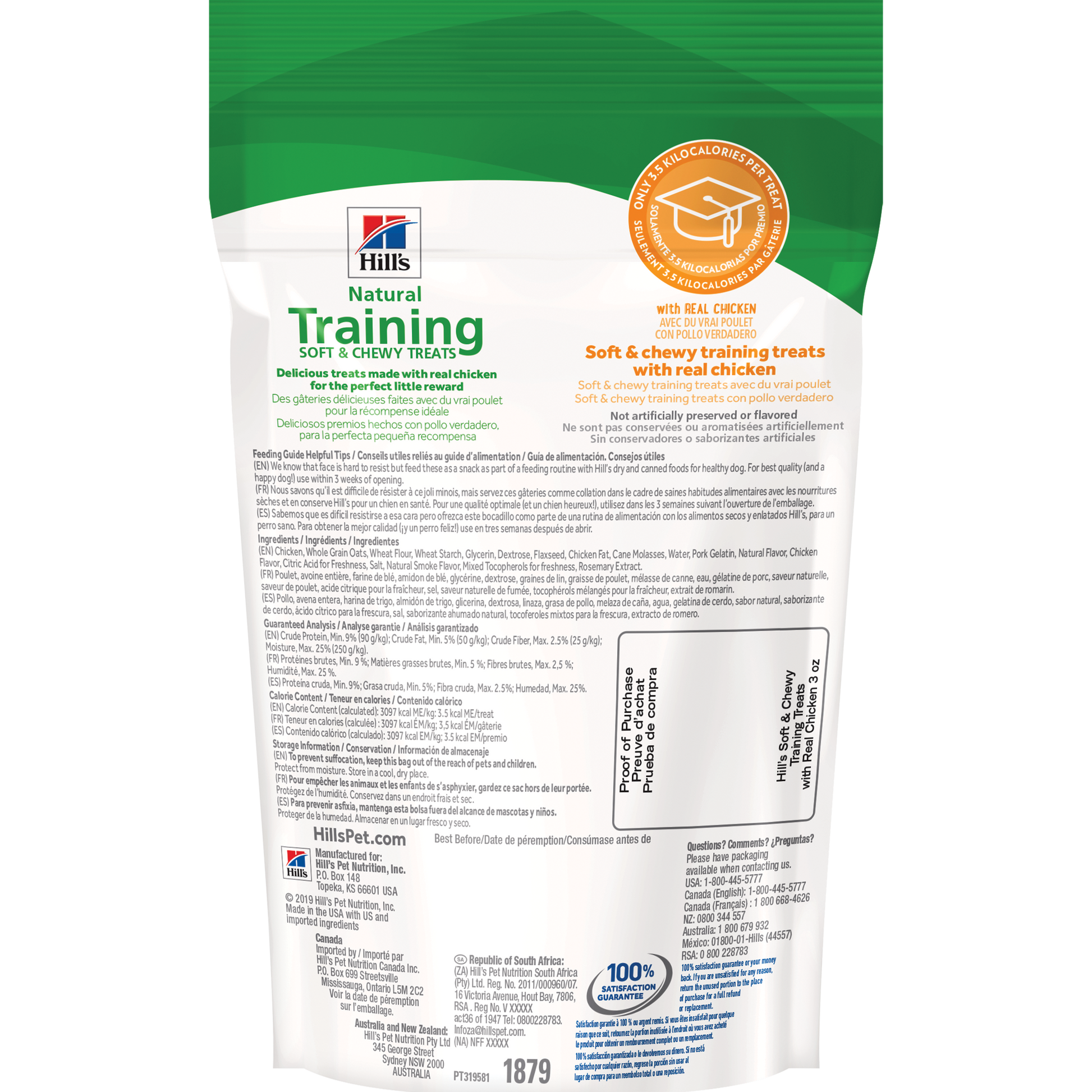 Hill's Science Diet Soft and Chewy Training Treats con pollo. Son premios naturales hechos con los mejores ingredientes. Sin maíz, ni colores o sabores artificiales.