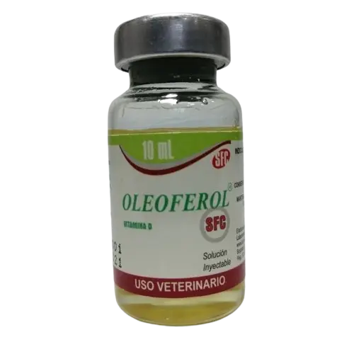 OLEOFEROL SFC es un medicamento inyectable indicado para el tratamiento de deficiencias de vitamina D en porcinos, caninos, gatos, potros y terneros. Este medicamento se administra por vía intramuscular profunda o subcutánea, proporcionando una solución efectiva para la deficiencia de vitamina D en animales jóvenes y adultos.
