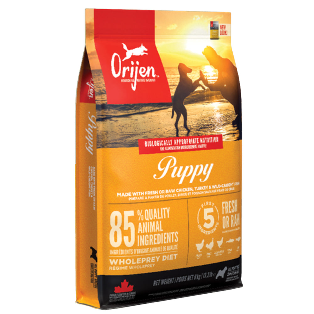 Orijen Puppy es un alimento seco de alta calidad diseñado especialmente para satisfacer las necesidades nutricionales de cachorros en crecimiento. Esta fórmula busca proporcionar una nutrición excepcional basada en ingredientes frescos y locales, siguiendo la dieta natural de los perros en su etapa de crecimiento. Con proteínas animales de alta calidad como pollo y pavo criados en granjas y pescado capturado en la naturaleza, Orijen Puppy es rico en proteínas para apoyar el desarrollo muscular y la vitalidad. Además, contiene una variedad de frutas, verduras y hierbas para brindar vitaminas, minerales y antioxidantes esenciales para el desarrollo del sistema inmunológico y la salud en general. Ideal para cachorros en crecimiento, Orijen Puppy ofrece una nutrición completa y equilibrada para un inicio saludable en la vida de tu perro.