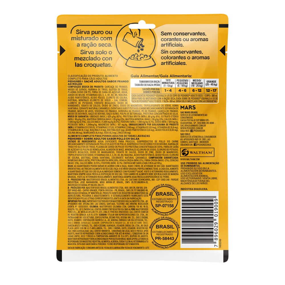 Tu perro no podra resistirse al atrayente aroma de los filetes de pollo en salsa en sobre de Pedigree. Estos ricos trozos de pollo serán los favoritos de tu perro gracias a su palatable sabor. Además, aportarán los nutrientes necesarios para llevar una dieta sana y completa. Contiene nutrientes especiales que favorecerán la salud oral, digestiva, de la piel y del pelaje. Además, son perfectos para consumir tanto solos como para ser mezclados con el concentrado habitual. Es un alimento húmedo para perros 100% completo y balanceado.