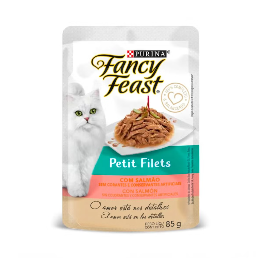 Eleva su experiencia gastronómica con Purina® Fancy Feast® Petit Filets Salmón, pequeñas tiras de carne tierna en una jugosa salsa aterciopelada. Pequeñas tiras de carne tierna en una jugosa salsa aterciopelada Sin Colorantes artificiales 100% completo y balanceado.