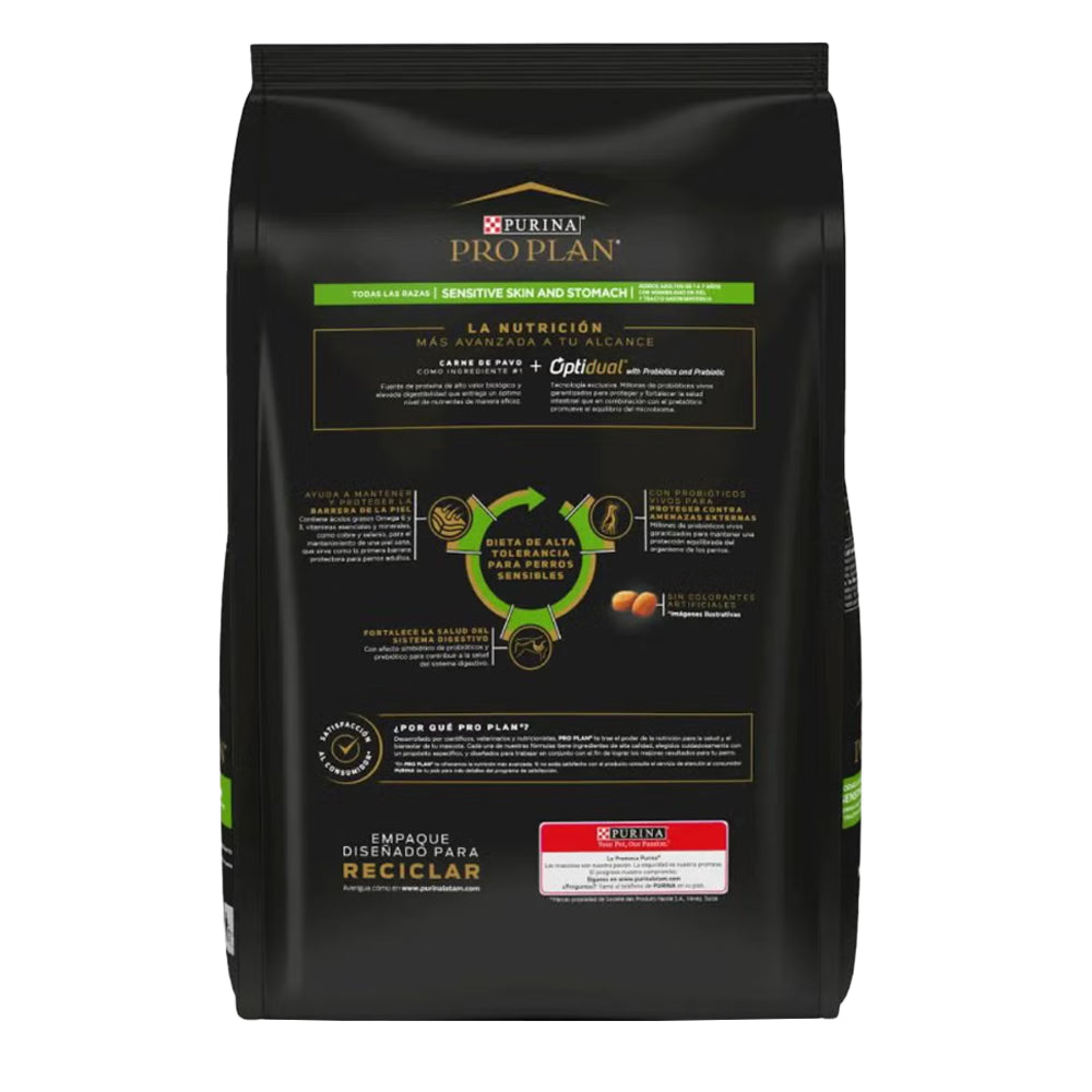Purina® Pro Plan®  Adultos con piel e intestino sensible es un alimento completo y balanceado que contiene carne de PAVO de verdad como ingrediente N°1, una fuente de proteína alternativa de alto valor biológico y elevada digestibilidad, ideal para perros sensibles.