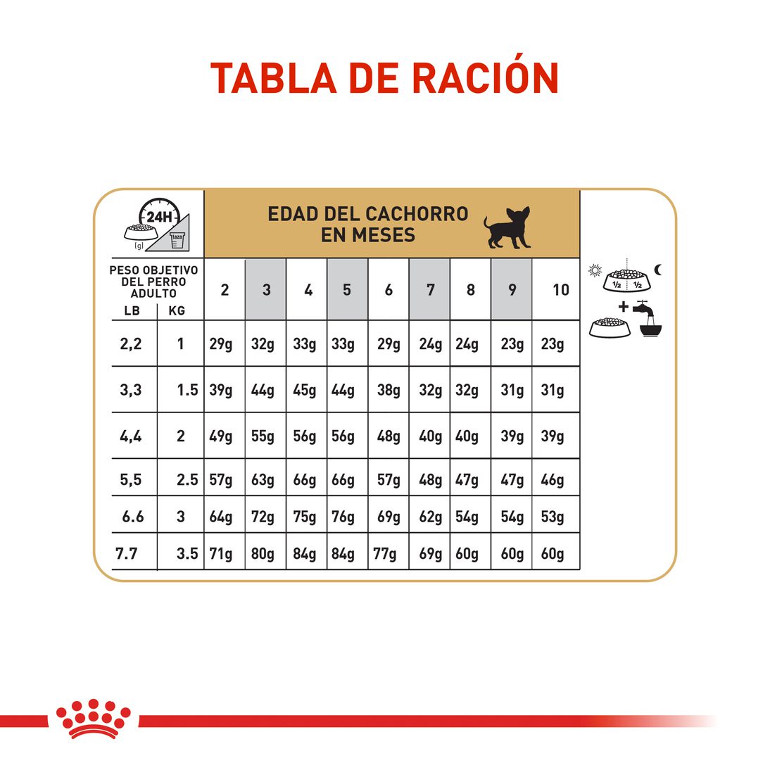 Royal Canin Chihuahua Puppy es un alimento especialmente desarrollado para cachorros de raza Chihuahua. Su fórmula está diseñada para satisfacer las necesidades nutricionales específicas de estos pequeños cachorros durante su etapa de crecimiento. Contiene ingredientes de alta calidad que promueven un desarrollo óptimo, fortalecen el sistema inmunológico y mantienen la salud digestiva. Además, sus croquetas son de tamaño y forma adecuados para satisfacer las necesidades de los cachorros Chihuahua y fomentar una buena masticación.