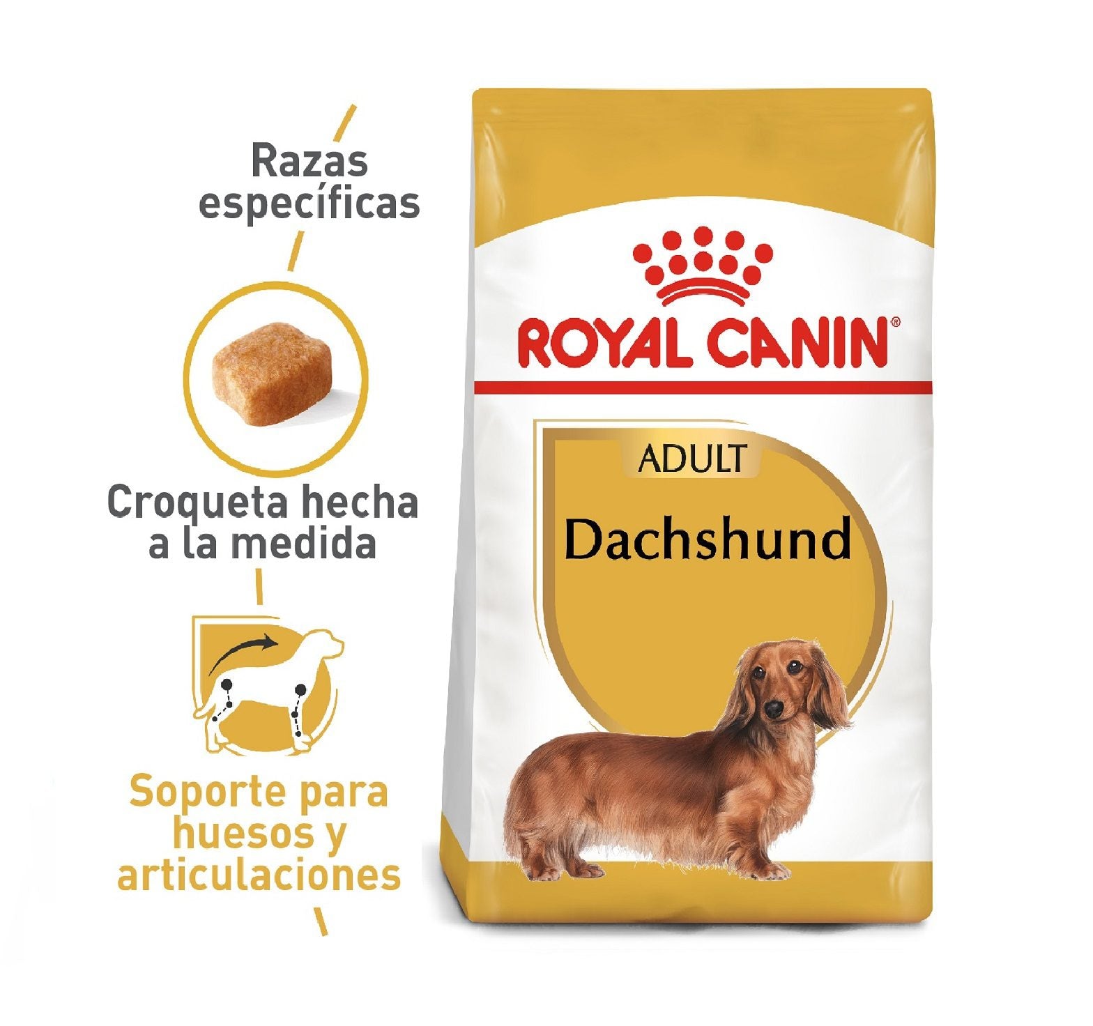 Royal Canin Dachshund Teckel Adulto es un alimento seco diseñado especialmente para satisfacer las necesidades nutricionales específicas de los perros adultos de raza Dachshund, también conocida como Teckel. Esta fórmula está creada para abordar las características únicas de los Dachshunds, como su forma alargada, estructura ósea y requerimientos nutricionales específicos.