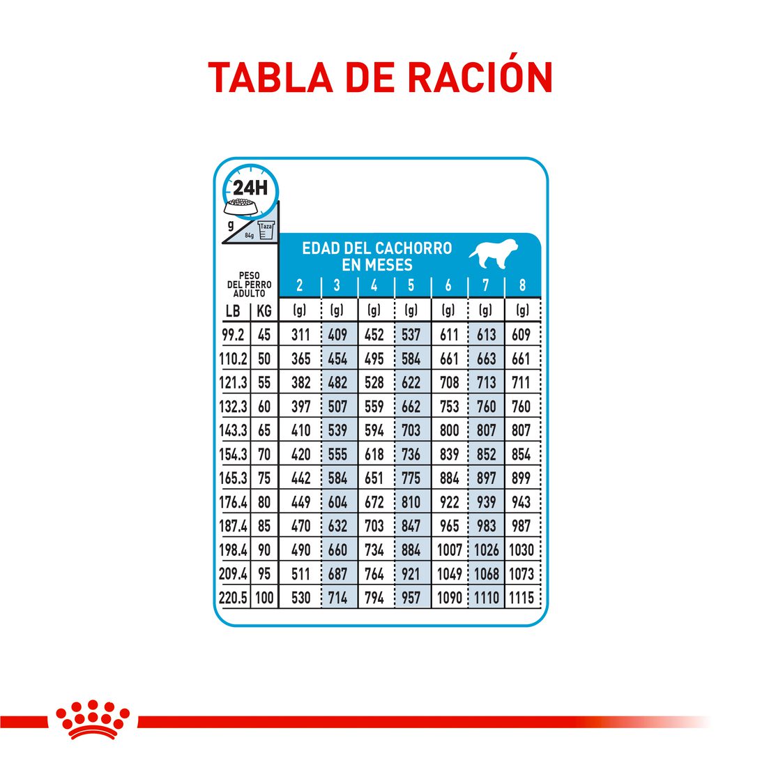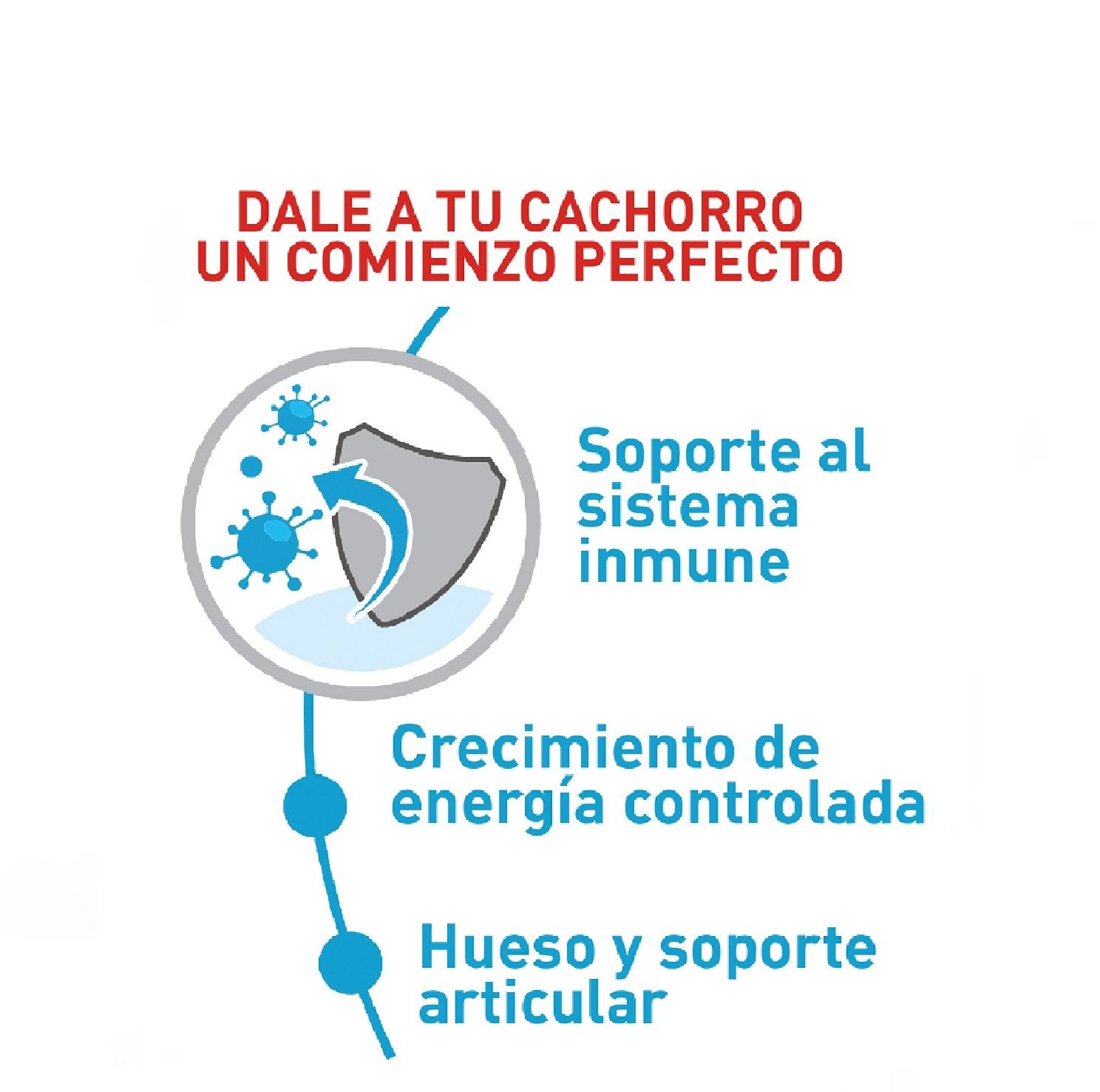 Ayuda a mantener un elevado ritmo de crecimiento durante la primera fase de crecimiento de los cachorros de razas gigantes y ayuda a evitar el aumento de peso excesivo gracias a un contenido energético adaptado.