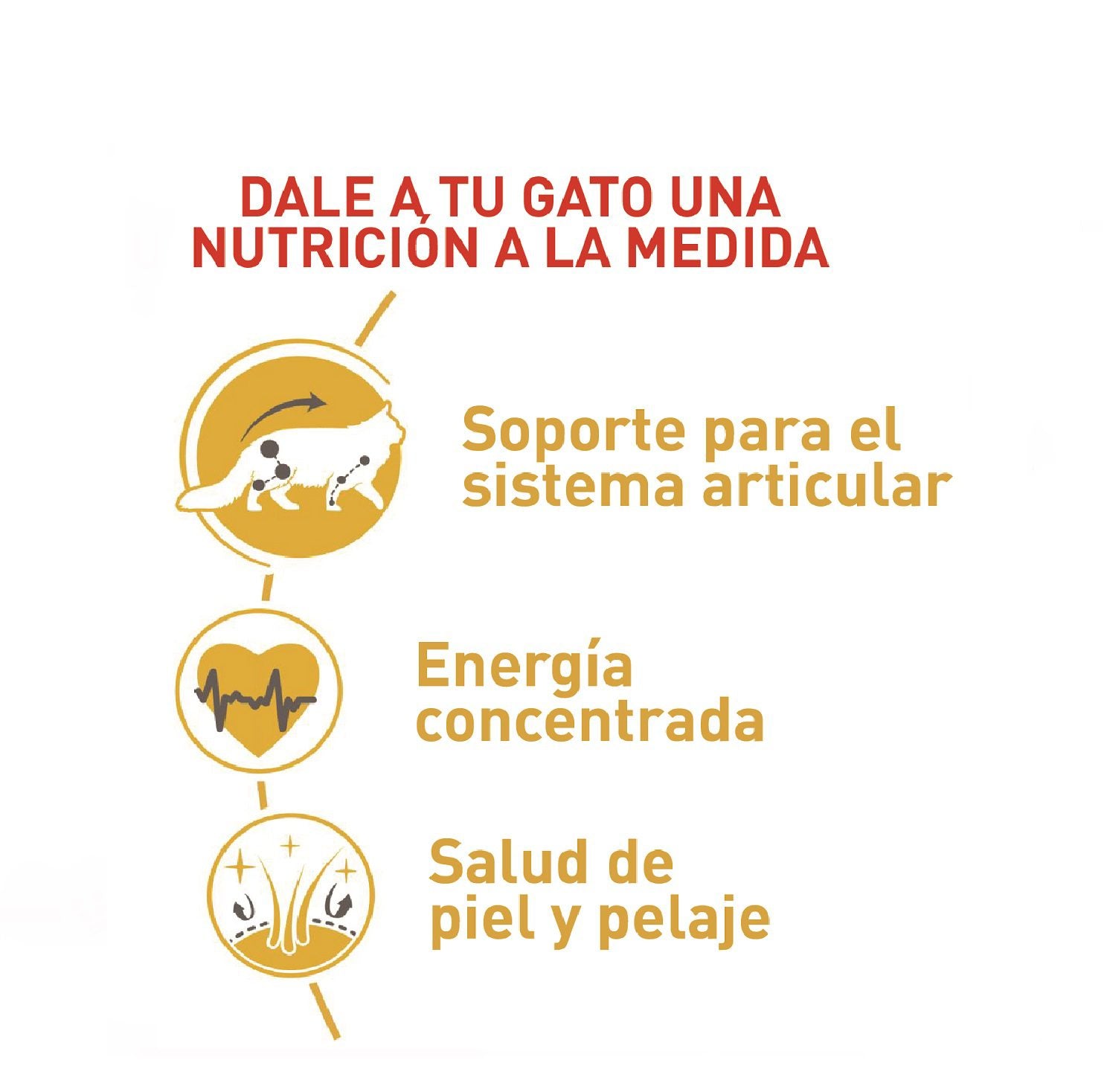 Contribuye a la salud de los huesos y de las articulaciones de esta raza de gato de tamaño y peso extraordinarios, gracias a una combinación exclusiva de sulfato de condroitina, glucosamina, y aceite de pescado (rico en EPA-DHA).