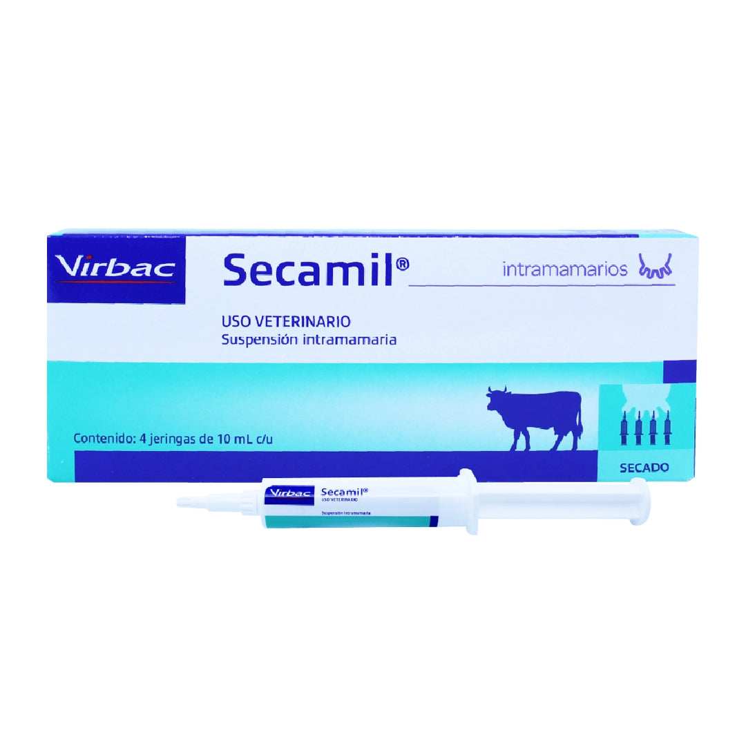 Secamil es una suspensión intramamaria compuesta por cloxacilina benzatínica 700 mg y ampicilina trihidratada 350 mg, con una alta liposolubilidad; indicada para la prevención y el tratamiento de mastitis subclínica, con efecto prolongado durante el período seco en bovinos.