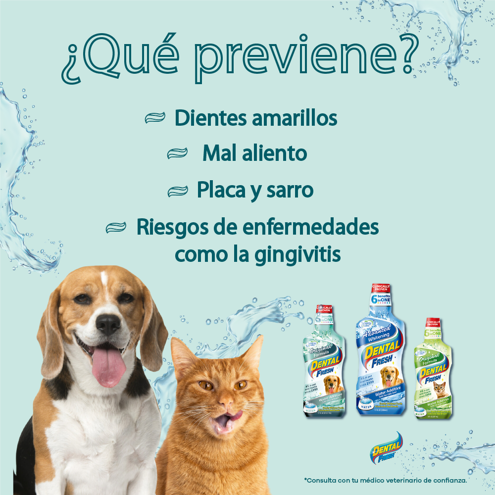 Indicado para ayudar a la higiene bucal en los perros y gatos. Sin alcohol, sin azúcar, sin detergentes y sin sabores picantes de menta. La fórmula se activa al contacto con la placa bacteriana y los gérmenes en la cavidad oral, eliminando bacterias y el mal olor causado por ellas.