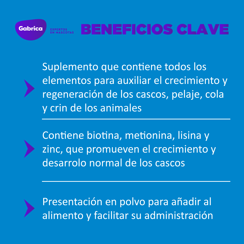 Suplemento nutricional vitamínico y mineral, indicado para equinos, mulares y cerdos en estado nutricional inadecuado, fortaleciendo el crecimiento ideal de los animales.