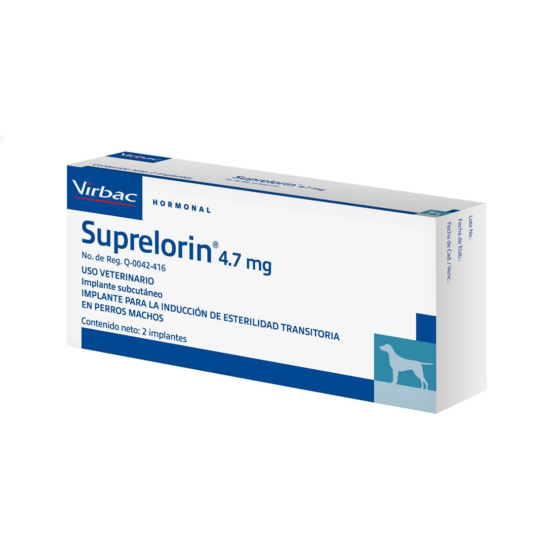 Suprelorin® es un implante hormonal subcutáneo de liberación prolongada, indicado para producir esterilidad temporal en perros machos. Su principio activo, deslorelina, actúa suprimiendo la producción de testosterona sin necesidad de cirugía, convirtiéndose en una alternativa segura y reversible a la castración quirúrgica.