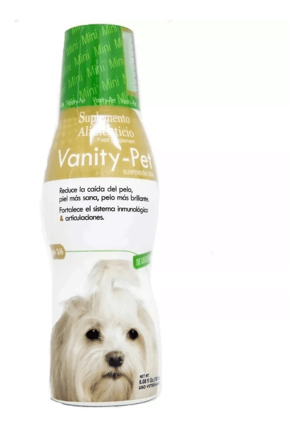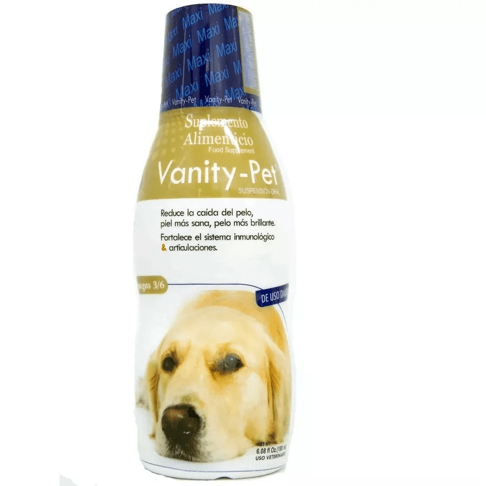 Vanity-pet es un suplemento alimenticio a base de acidos grasos esenciales, vitaminas y minerales para perros y gatos. Reduce la caida del pelo, piel mas sana, pelo mas brillante.Fortalece el sistema inmunológico & articulaciones.